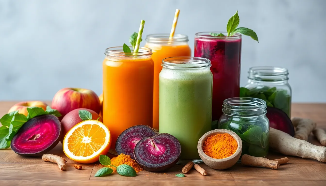 Each detox drink boasts a well-balanced nutritional profile. Vital vitamins such as A, C, and E support immune function and skin health. Antioxidants from organic fruits and vegetables help combat oxidative stress. High water content in these drinks aids hydration, promoting overall well-being. Each serving contributes to one’s daily intake of essential nutrients, making detoxing a beneficial choice.